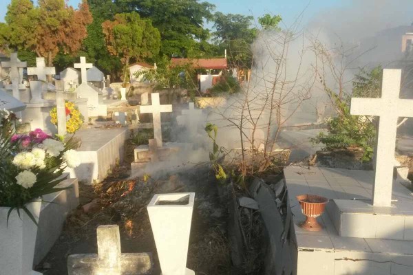 La lumbre dijo, dañó algunas cruces de madera, así como algunas tumbas que estaban recién pintadas, y que personal del mismo camposanto apoyó para apagar el fuego antes de que se extendiera a más zonas.