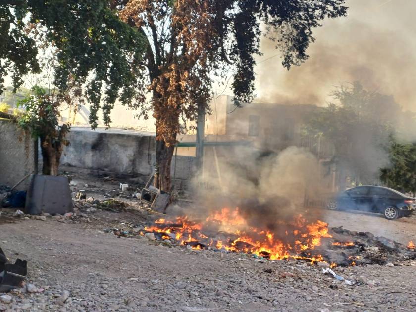 Se reporta un incendio en la vía pública en la colonia Libertad, en Culiacán