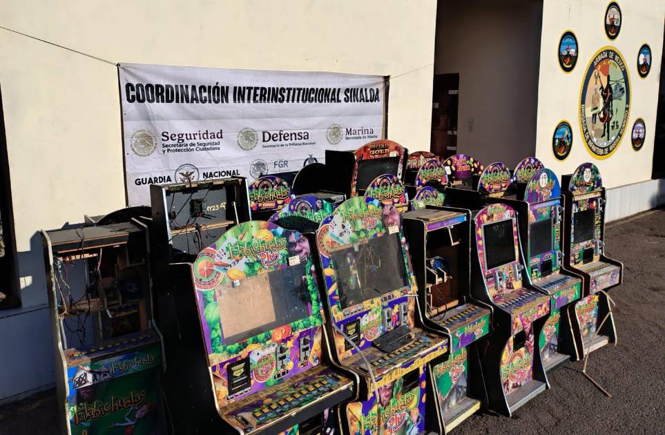 Elementos de la Secretaría de Marina aseguraron 25 máquinas tragamonedas en la colonia Las Misiones, en Mazatlán, en un operativo derivado de reconocimientos terrestres.