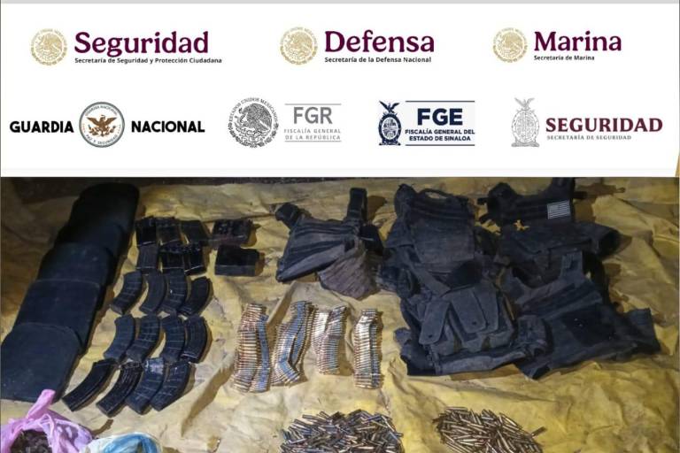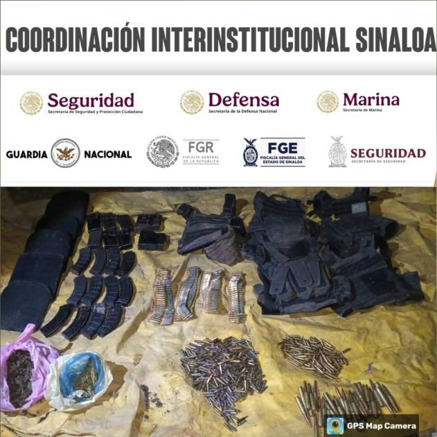Semar asegura tubos de emulsión explosiva, municiones, equipo táctico y droga en Cosalá