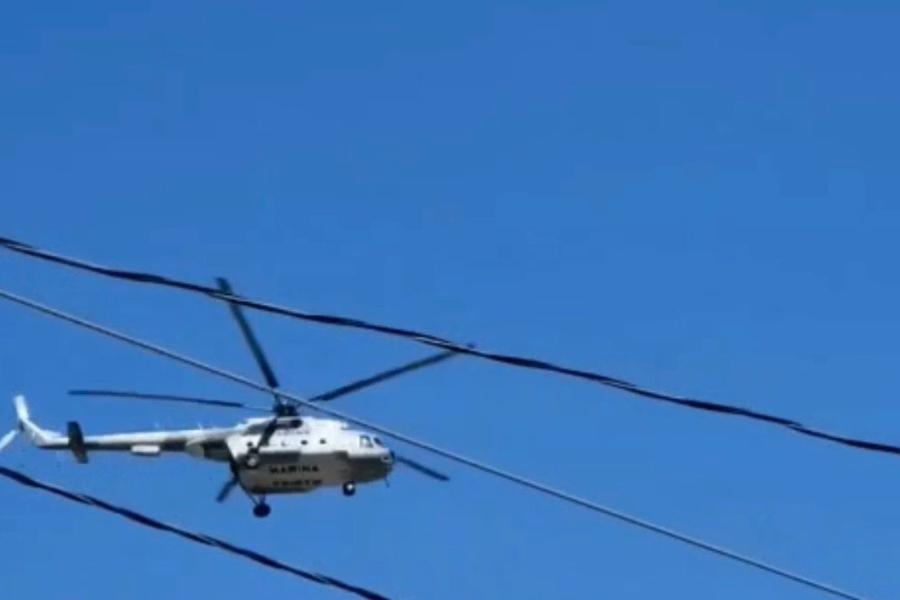 A través de redes sociales, vecinos difundieron videos en los que se aprecia el helicóptero volando a baja altura, lo que provocó inquietud entre la población.