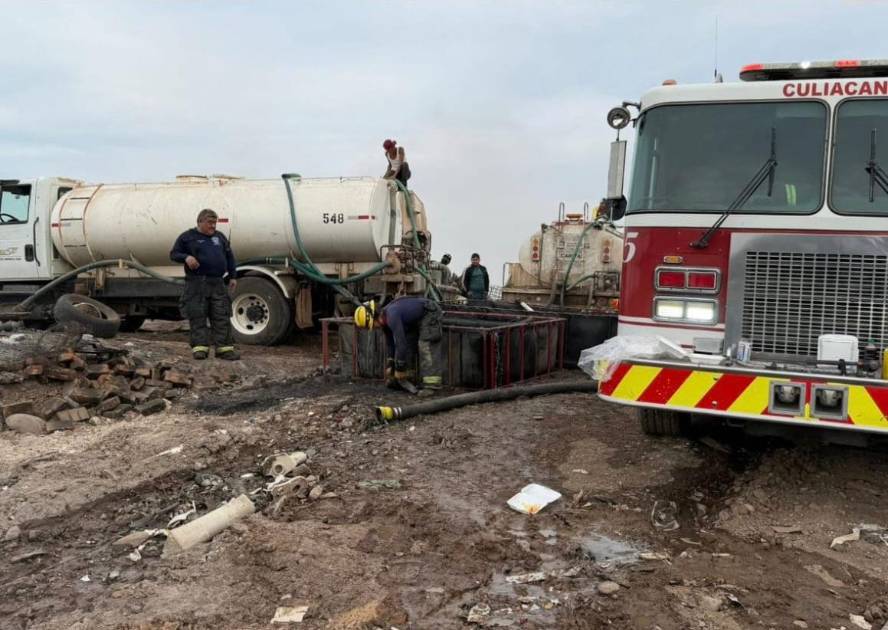 Tras más de 24 horas desplegados en el lugar, personal de Bomberos Culiacán finalizan trabajos de enfriamiento y extinción de las llamas