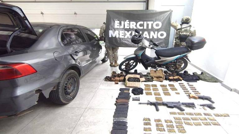 En el lugar se aseguraron tres fusiles, entre ellos un AK-47 calibre 7.62 x 39 mm, un fusil Remington calibre .308 y uno tipo AR-15 calibre 5.56 x 45 mm, además de una carabina tipo M4 comando calibre 5.56 x 45 mm y una pistola Glock calibre .40.