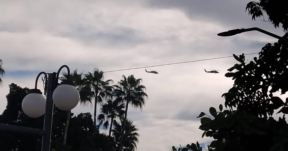 Las aeronaves son dos helicópteros black hawk, que poco después de las 10:00 horas comenzaron a realizar varios vuelos en círculos por el primer cuadro de la ciudad y extendiéndose hacia el sur de la ciudad.