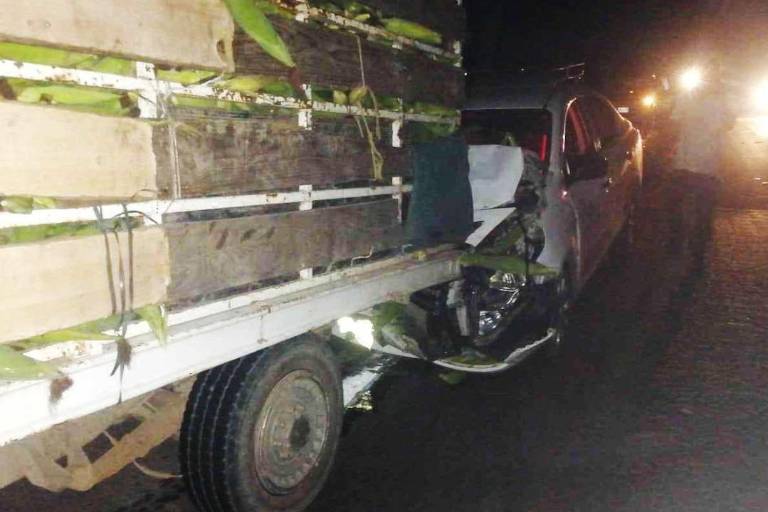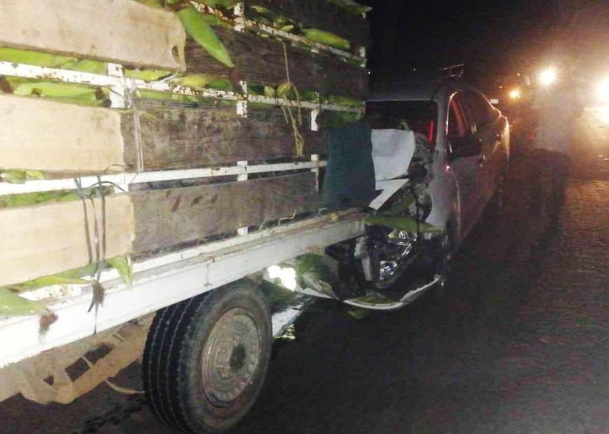 La camioneta cargada de elotes circulaba por el carril derecho en el sentido de sur a norte, cuando un taxi rojo se impactó en la parte trasera de la camioneta.