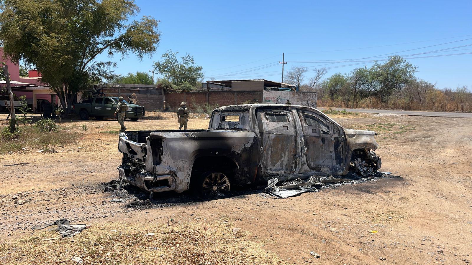 De manera preliminar, se confirmó un ataque armado a una pequeña hacienda ubicada en una zona más adentrada del poblado. La agresión derivó en una persecución que culminó con el hallazgo de una camioneta blanca con blindaje artesanal, incendiada y abandonada a un costado de la carretera, donde también quedaron esparcidos neumáticos y restos de autopartes.