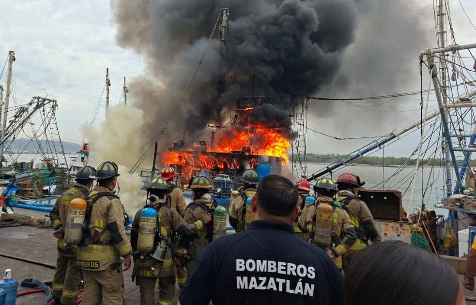 Trabajos de soldadura provocan explosión e incendio de un barco camaronero en Mazatlán