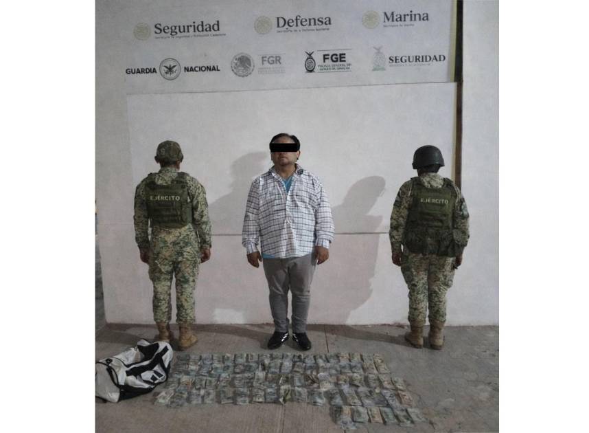 Un hombre fue detenido por elementos del Ejército Mexicano en posesión de más de 700 mil dólares en efectivo, al ser parado en un punto de revisión o retén, en Culiacán.