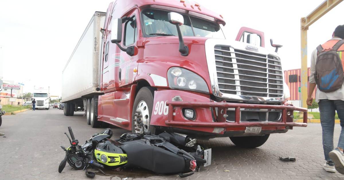 MAZATLÁN._ Dos motociclistas fueron embestidos por un tráiler cuando circulaban sobre la glorieta ubicada en el cruce del Delfín y la “Peche” Rice, en Mazatlán.