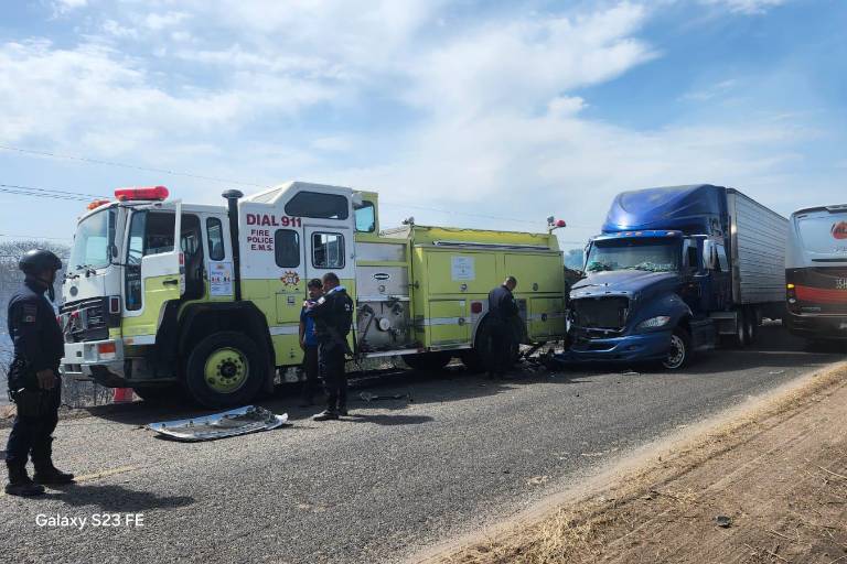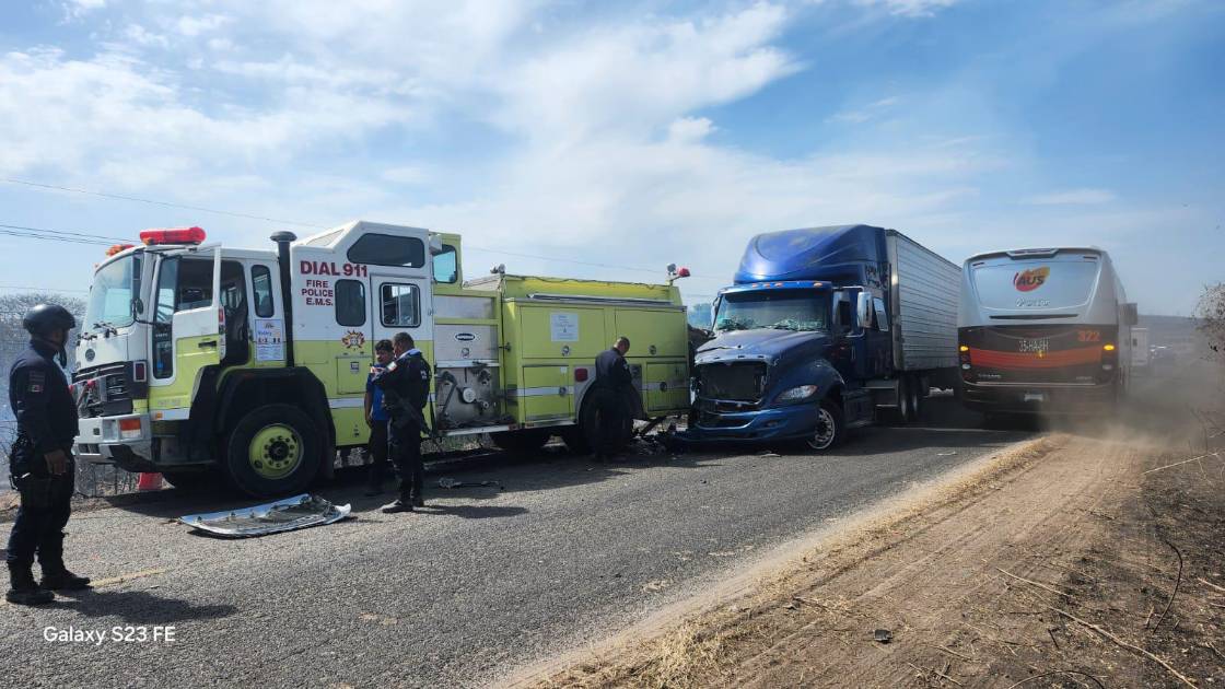 Tráiler choca unidad de Bomberos en Escuinapa y deja dos lesionados