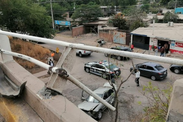 "Tras carambola, pareja cae de un puente y resulta lesionada, al sur de Culiacán"