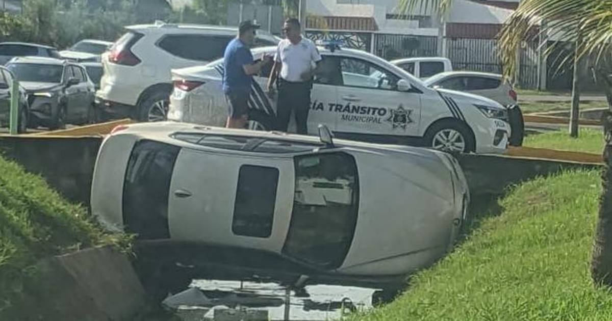 Tras choque, auto cae a canal pluvial de Mazatlán