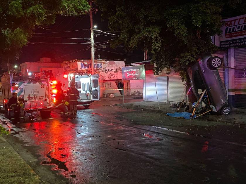 El accidente fue reportado alrededor de las 4:20 horas de este miércoles, cuando la persona conducía un vehículo Nissan March de color gris por el bulevar Las Torres y al pasar el bulevar Navidad perdió el control del volante para después impactarse contra un árbol, debido a la fuerza del golpe la unidad salió expulsada para quedar en frente de un domicilio de dos plantas y de un taller mecánico.