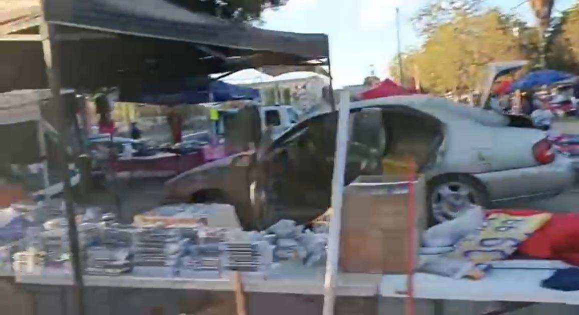 Vehículo arrasa con puestos del Tianguis de Lombardo Toledano, en Culiacán