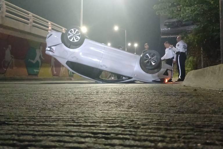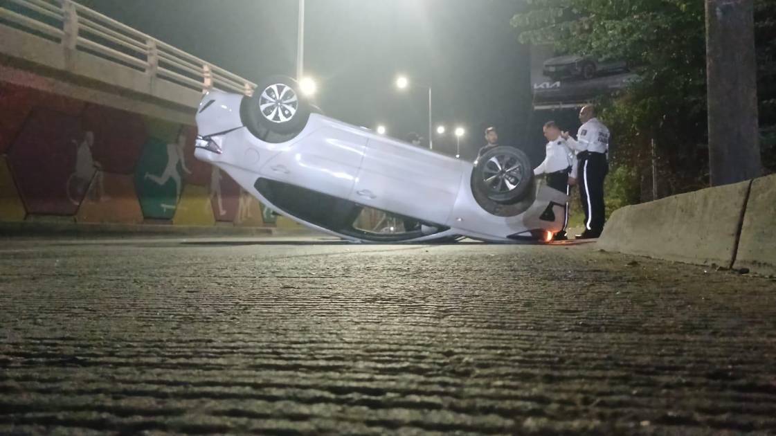 Fue alrededor de las 19:30 horas cuando se reportó la presencia de un automóvil totalmente volcado que congestionaba la circulación vehicular por el lado derecho del puente del Paso Superior Rolando Arjona.