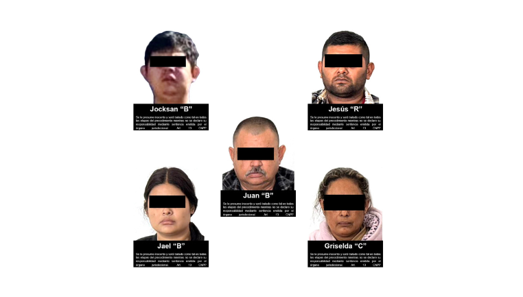 En la acción arrestaron a Jael “B”, Griselda “C”, Jesús “R”, Jocksan “B” y Juan “B”, a quienes les aseguraron diversas armas de fuego, cargadores, cartuchos y narcótico.