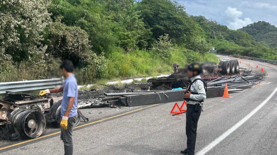 Volcadura e incendio de tráiler obliga cierre a la circulación de la Autopista Durango-Mazatlán