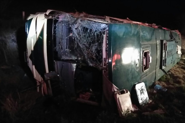 Esto provocó que el chofer del autobús tratara de esquivar el golpe por lo que se salió de la carretera y terminó volcándose.