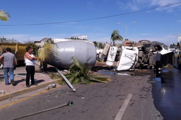 "Vuelca camión revolvedor, en la salida norte de Mazatlán"