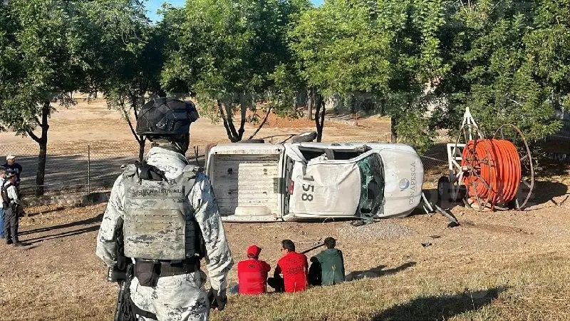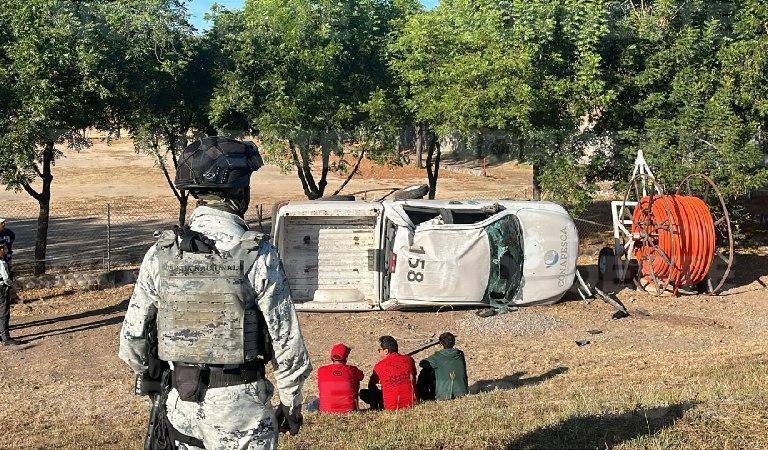 Vuelca camioneta oficial de Conapesca en la Carretera México 15, al sur de Culiacán