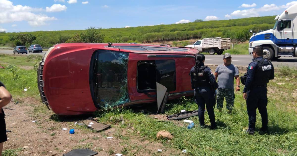 De acuerdo a la información, la volcadura se debió a una falla mecánica en el carro, una Cherokee color rojo, lo cual desembocó en que saliera de la carretera.