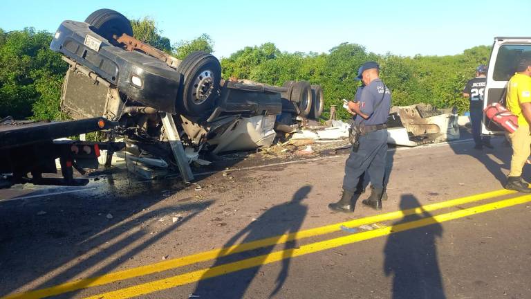 El accidente tuvo lugar a las 06:40 horas y se reportó que el conductor quedó prensado en la unidad, la cual transportaba camarón.