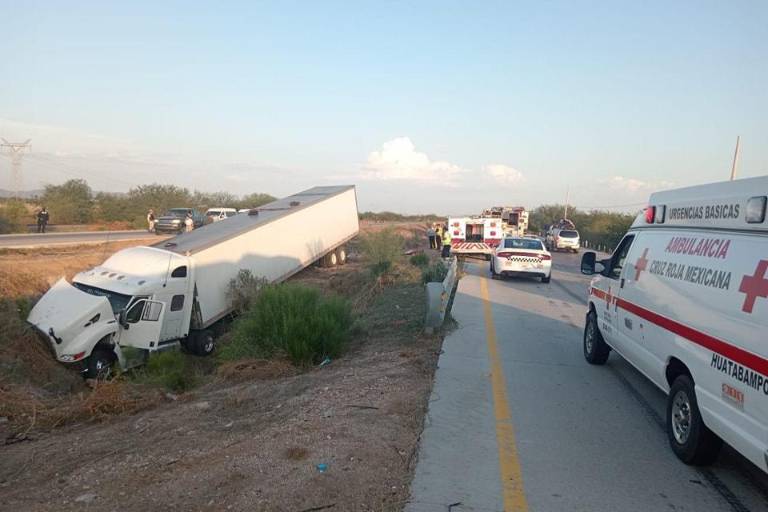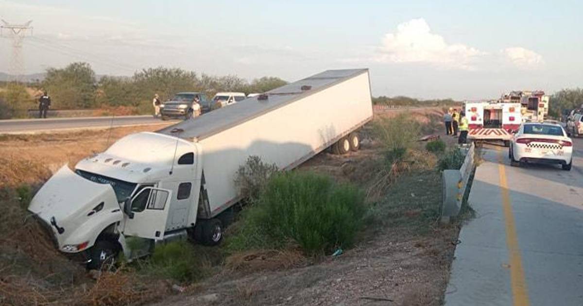 Un tráiler que transportaba migrantes volcó a la altura del ejido Francisco Sarabia, en Navojoa, Sonora, cuando el chofer perdió el control de la unidad.