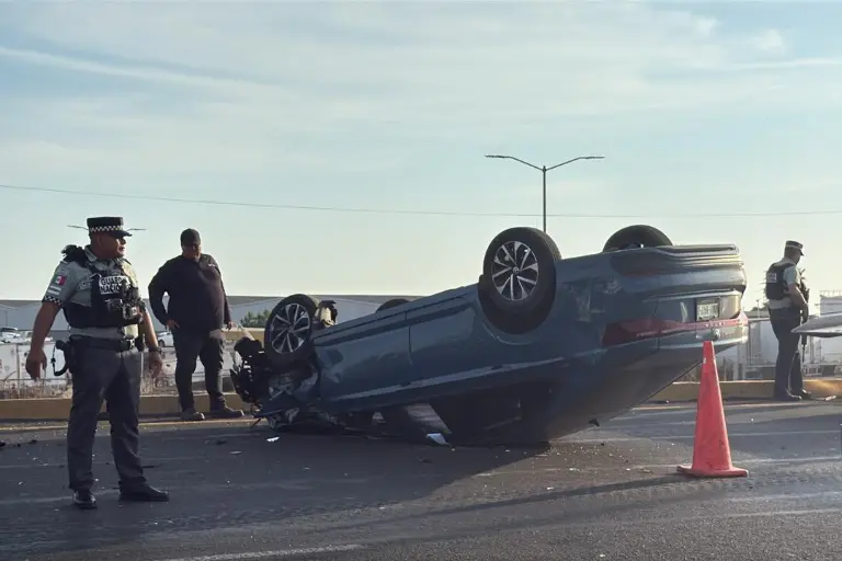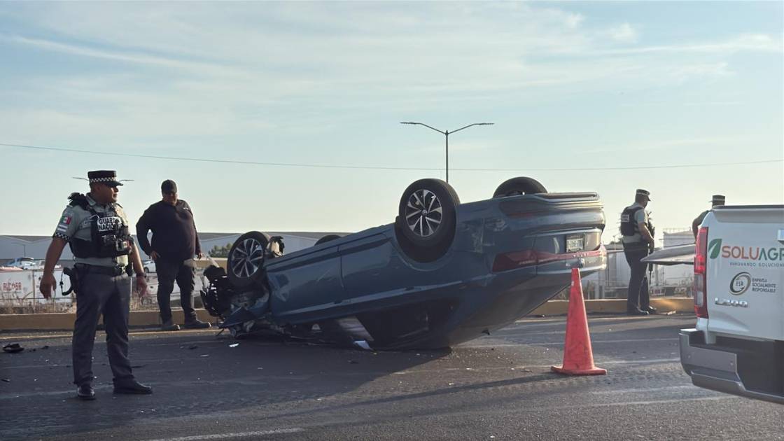Tras el percance, el vehículo terminó volcado con los neumáticos hacia arriba, cerca del camellón central.